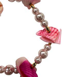 Stretch bracelet with small silver tone Hope charm, pink beads, and shell pieces