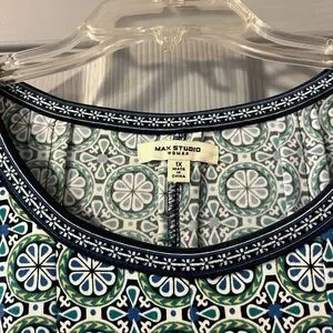 Max Studio Blue and Green Pleated Midi Sundress