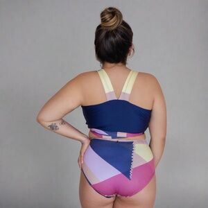 Built in shapewear color blocked 2 pc bikini set plus size NWT