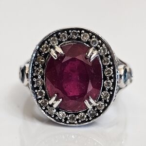 Genuine Rarities Carol Brodie Ruby, Champagne Diamonds & Blue Topaz Sz 7.75