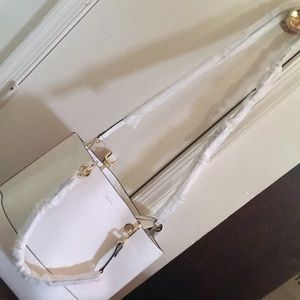 All white or white with a beautiful flower brand new with tags MSRP 168$ has smaller purse-wallet type thing connected inside and all brand new. Comes with a rectangle bottom piece to put in bottom of bag as well. Magnetic closure, shoulder strap or by hand it’s very versatile all can be taken off for whatever you prefer/need at that time.