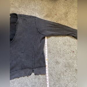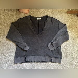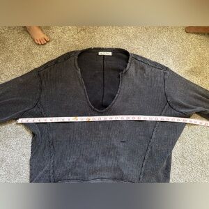 Good condition. No rips, stains or smells. Perfect for layering or styling solo, this effortless thermal is featured in a V-neck silhouette with exaggerated sleeves and exposed seaming for the perfect lived-in look. Color is with a free black, but reads more like a dark charcoal/deep grey. Size is free people extra small. So… like large/medium. 😅