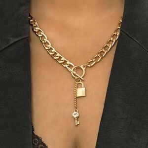Chic Lock and Key Diamond Gold Plated Chain Necklace