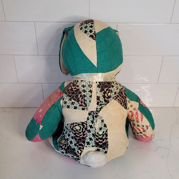 Vintage Handmade Patchwork Quilt Bunny Rabbit Plush Stuffed Holes Stains FLAWS
