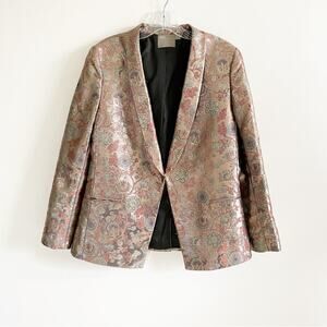 ASOS Floral Golden Metallic Jacquard Blazer. Size 10. Shoulder pads. Pockets - 1 pocket is still stitched closed.