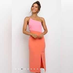 Petal & Pup Color Block One Shoulder midi dress nwot