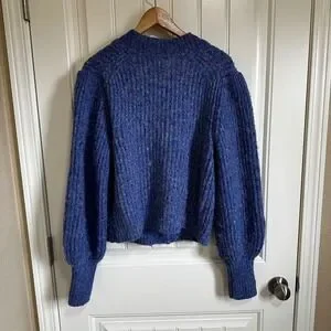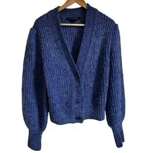 French Connection Knit Cardigan Sweater Puff Sleeve Blue L