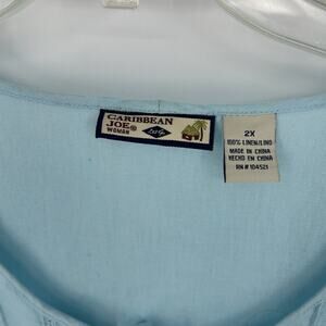 Caribbean Joe Womens Linen Tunic Top Light Blue Pleated Lagenlook Size 2X