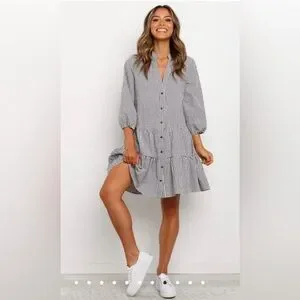 This gorgeous gingham print dress is the perfect addition to your summer wardrobe! Its mini length and oversized relaxed fit make it a comfortable, yet stylish choice. The v neckline gives this dress a fun touch, while the long sleeves with elasticised cuff add an elegant flair.