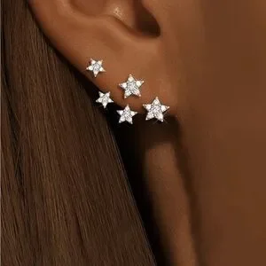 constellation star-shaped climbing studs with silver stones and gold finish. minimalist design. Brand new. Never worn.
