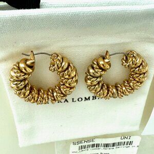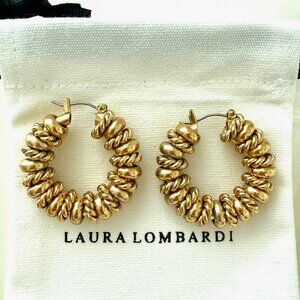 Pair of brass LAURA LOMBARDI Serena hoop earrings in a gold-tone finish with striking beaded detailing.