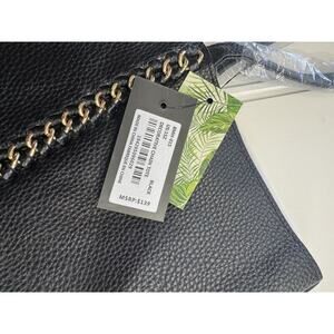 Badgley Mischka Black Chain Link Vegan Leather Large Tote Charms NWT $139
