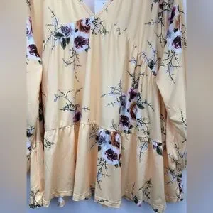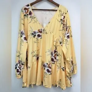Linjou plus size 4X Women’s Yellow Floral Boho V-neck Long Sleeve Blouse Tunic Top NWT