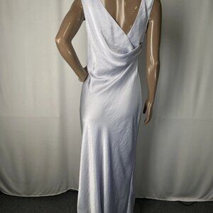 Elevate your wardrobe with this stunning Theory women's maxi dress in a dreamy Hydrangea Purple. This new with tags (NWT) piece is crafted for timeless sophistication and modern elegance. The scoop neckline in front is beautifully complemented by a dramatic cowl back, creating an alluring silhouette perfect for both formal events and elevated everyday wear.