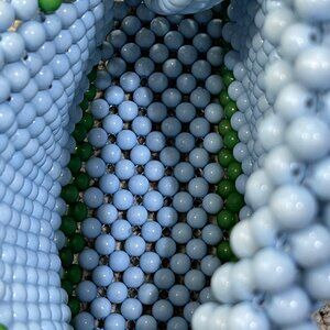 Stylish colorblock crossbody bag featuring a unique collaboration between Kate Spade and Target. Perfect for any occasion, this bag boasts vibrant blue and green hues and intricate beaded detailing. A must-have accessory for fashion-forward individuals.
