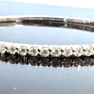 Solid 14k White gold Diamond Bangle Hinge bracelet