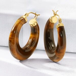COPY - Ross-Simons 14K Yellow Gold Tiger Eye C-Shaped Hoop Earrings