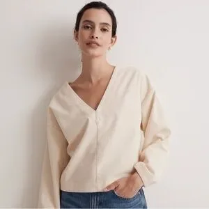 This Madewell blouse in a soft cream hue offers a relaxed fit with long sleeves, perfect for a comfortable yet stylish look. The fabric is corduroy-like. Like new condition.
