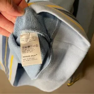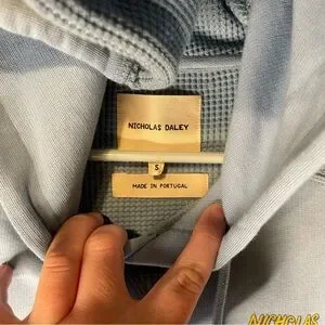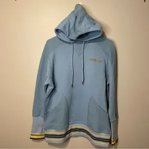 Nicholas Daley Paneled Stripe-Trim Hoodie Blue Waffle Knit Unisex