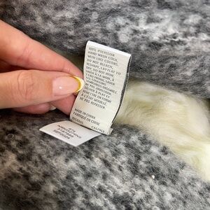 Wrap yourself in the luxurious comfort of this Nordstrom scarf, featuring a sophisticated gray and white color palette. The textured material adds depth, while the white fringe provides a stylish contrast. Perfect for adding a touch of elegance to any ensemble. NWT.