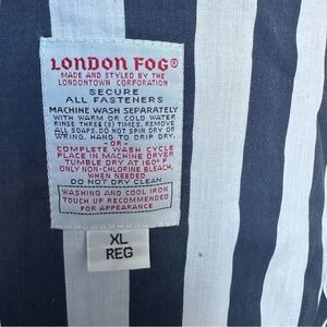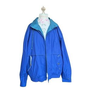 Channel classic nautical style with this vintage London Fog Sailing Windbreaker in Men’s XL. Featuring a bold royal blue shell with a contrasting green collar and striped lining, this jacket blends functionality with timeless preppy aesthetics.