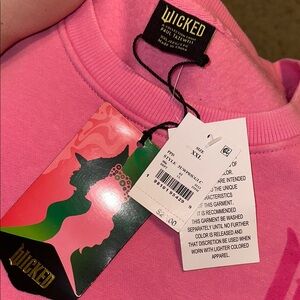 Brand new Wicked pink crewneck from target under the Paul Tazewell collection. Tags attached. Super soft & oversized. Defying gravity in a velvet like texture on the back in a spiral. Perfect for Wicked For Good or to see the Broadway show!