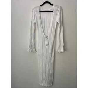NWT SNDYS Baha Long Sleeve White Maxi Knit Dress Size M Cover-up Revolve