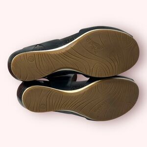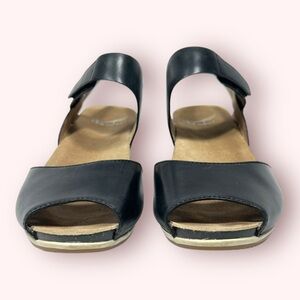 Dansko Vera Peep Toe Ankle Strap Leather Cork Wedge Sandals Womens Size 37 Black