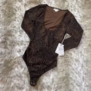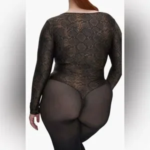 Good American Shine Python Scoop Neck Long Sleeve Bodysuit