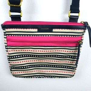 Women's Fossil Boho Pink Black Poka Dot Crossbody Purse