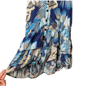 Free People tropical boho tiered ruffle flowy button front mini dress