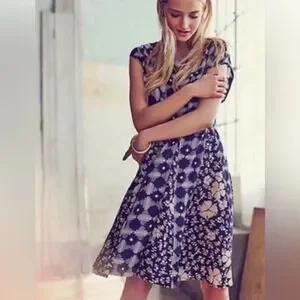 Anthropologie Maeve Indiga patchwork boho corset tassel flowy swing dress