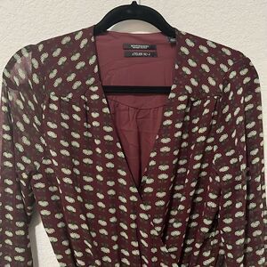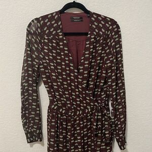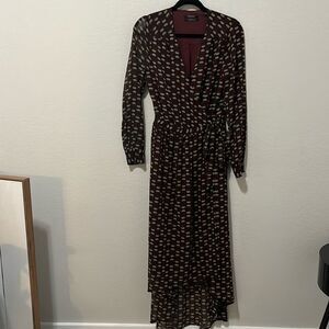 SCOTCH & SODA Atelier 4 Maroon Floral High-Low Wrap Dress, Size M