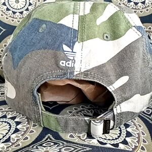 Stylish Adidas baseball cap with a green camo pattern. Raised embroidery logo on front and back. Adjustable strap back buckle. Non smoking pet free home.