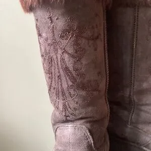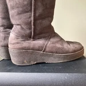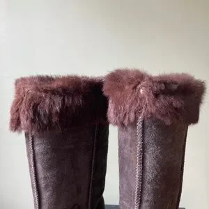 Clarks | Suede Shearling Rabbit Fur Lined Tall Wedge Winter Boots