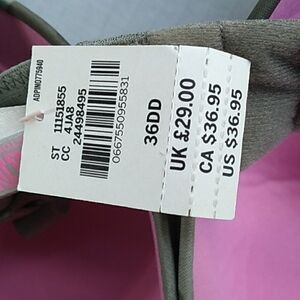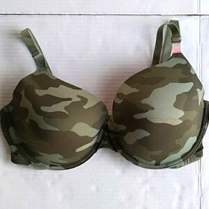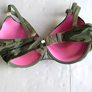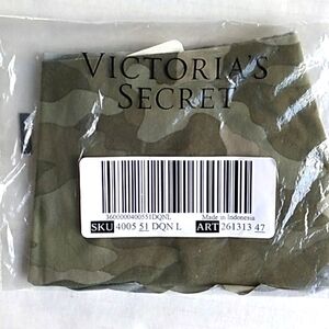 Victoria's Secret camo bra 36DD and 2 panties large. Everything is new with tags. One pair of panties was ordered and still in plastic, the other one was bought in store with the bra. The panties are cheeky.