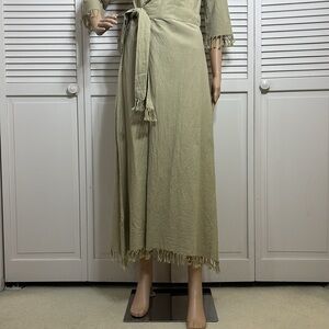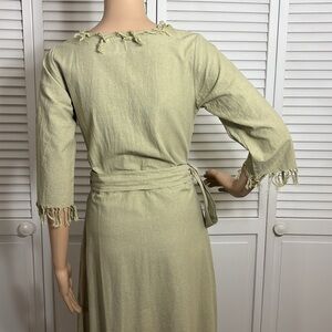 Chintamani Wrap Boho Cotton Dress with Fringe Sage Green Small