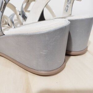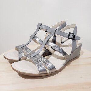 Women's Size 9 Ecco Silver Metallic Strappy Wedge Sandals Coastal Grandma Feminine Boho Chic Basic Classy Timeless