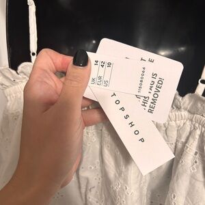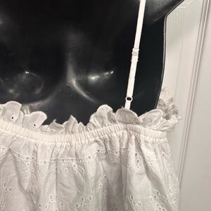 Brand new with tags! Pretty white eyelet flouncy top with adjustable straps. Brand is Topshop, size 10
