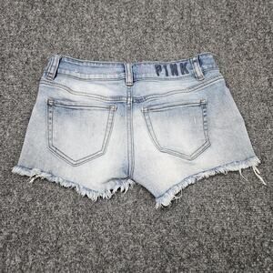 Victorias Secret PINK Jean Shorts Size 0 Cutoff Denim Jorts Frayed Faded Logo