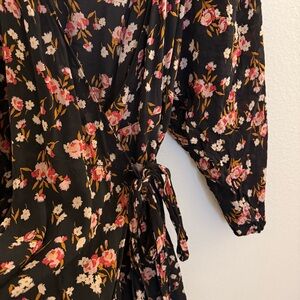 Elegant black dress with a vibrant floral pattern. Perfect for any occasion.