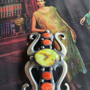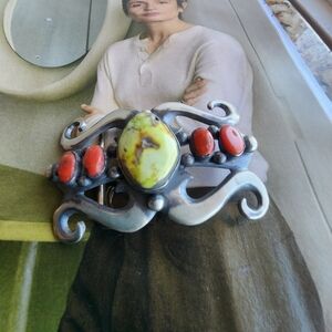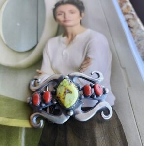 Style: His jewelry is characterized by heavy-gauge sterling silver, intricate stamp work, deep hand-carved designs, and the use of high-quality gemstones like turquoise.