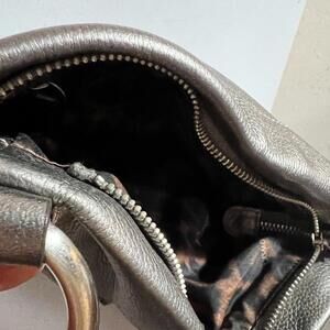 B Makowsky Cross Body Shoulder Bag Slim Hobo Purse Silver Pebbled Leather