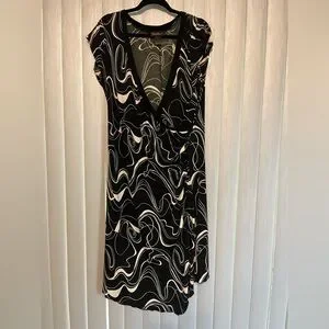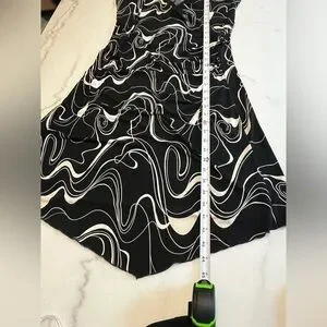 Step out in style with this abstract print dress. Perfect for any occasion, this dress offers a flattering fit and a chic design.