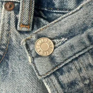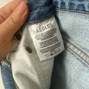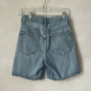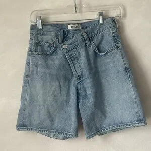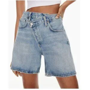Agolde criss cross jean shorts size 23 revolve aritzia button fly long jorts