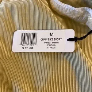 Khaki high waist chain bike shorts. Unique look to dress up your workout. 88% nylon, 12% spandex. Lots of stretch Sz M NWT.