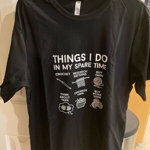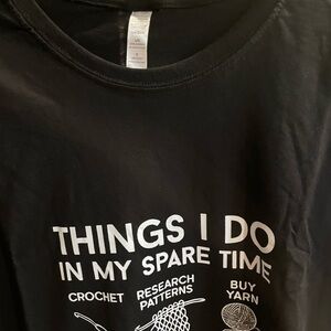 Black t-shirt featuring a fun crochet-themed graphic. Perfect for crochet enthusiasts.