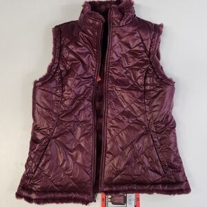 Luxurious plush faux fur vest in a rich purple hue. Perfect for staying stylish while keeping warm.