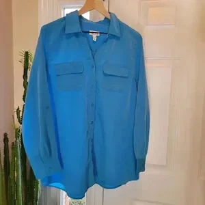 D&Co Beautiful Blue Business Casual Button Up Longsleeve Shirt, Size XL Pockets