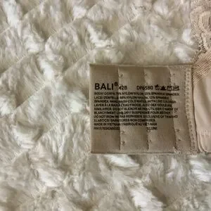 New without tags. Bali smoothing underwire bra DF6580, size 42B, tan. Lightly padded. Gorgeous lace trim on surface of back. Extra padding on underwire for comfort. Adjustable straps, can be converted to an X-shaped back.